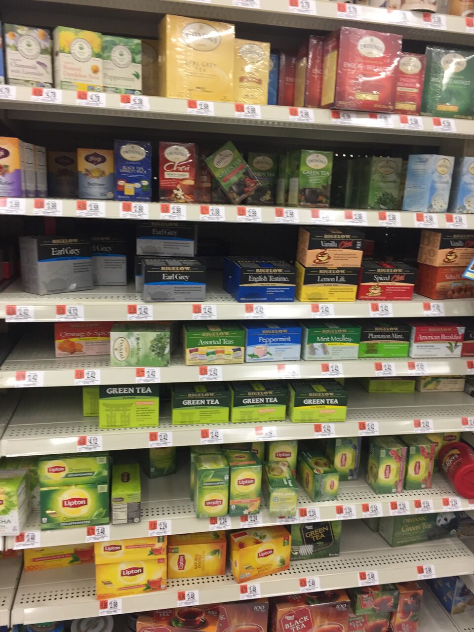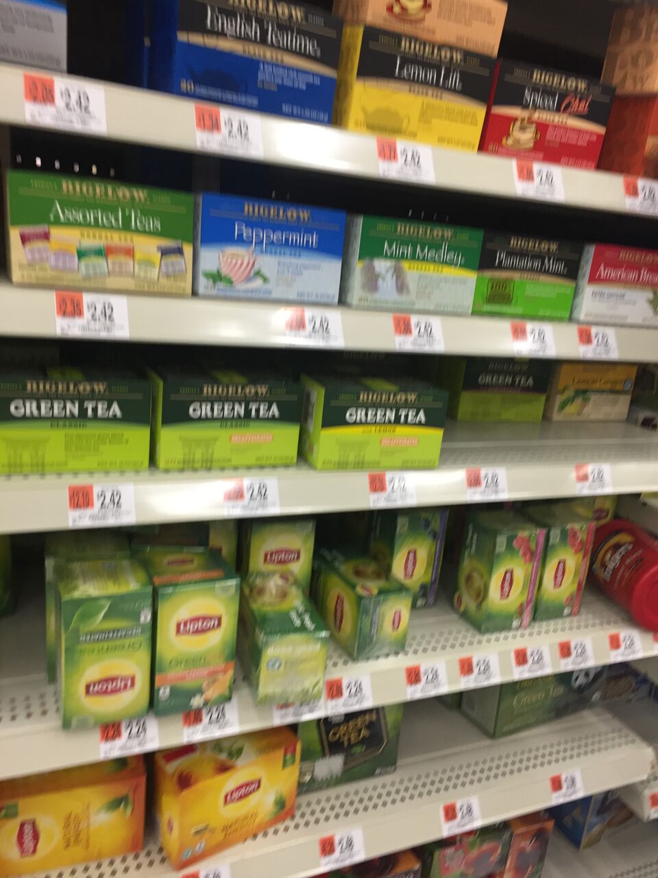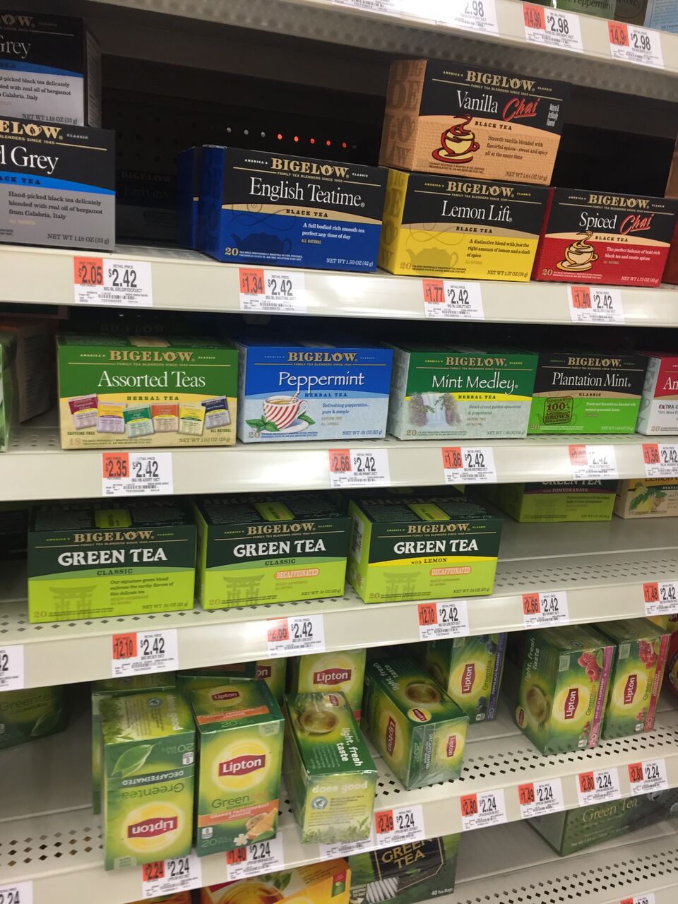 We get our Bigelow Teas at our local Wal Mart for the best prices and lots of flavor options!