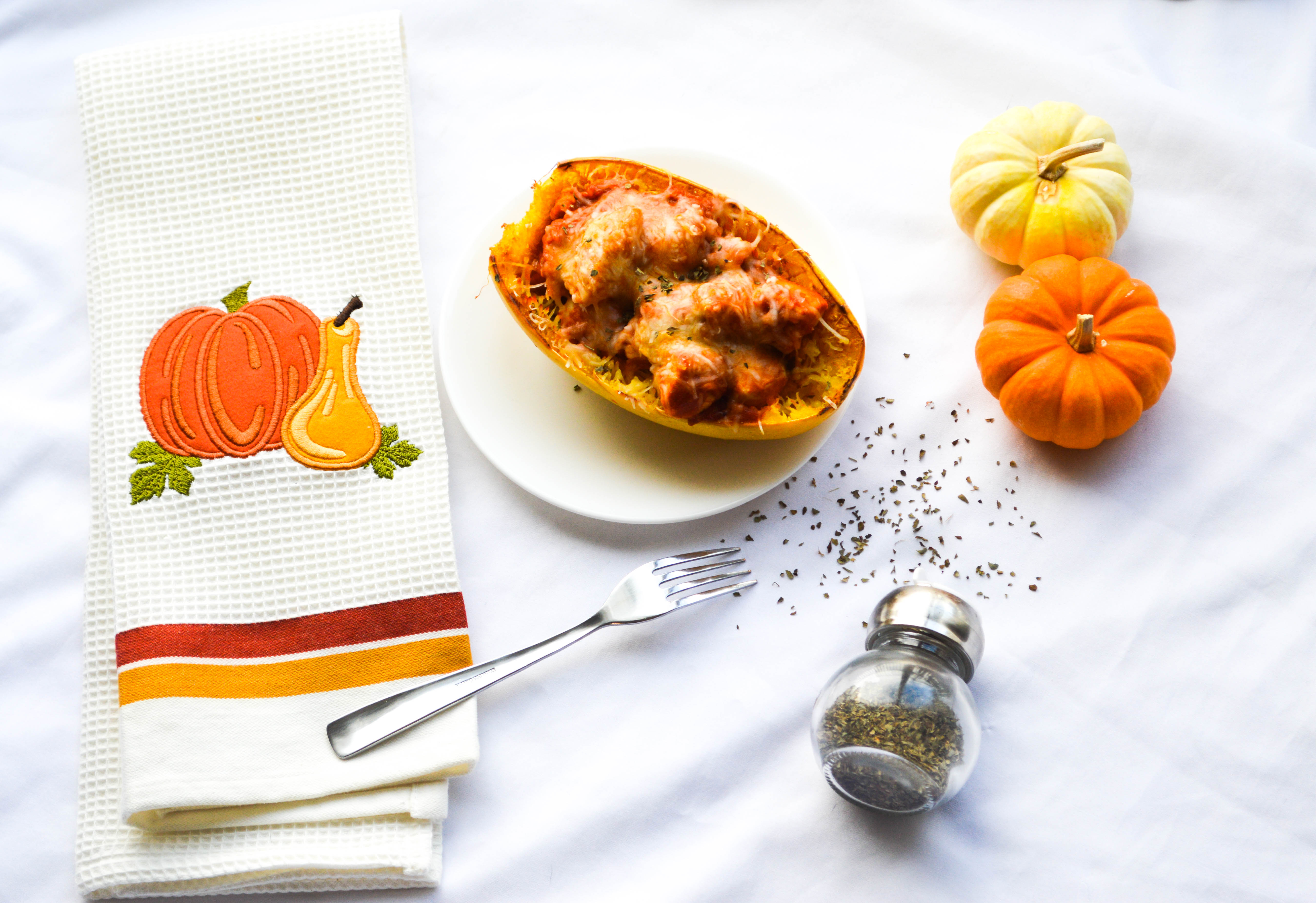 I LOVE italian food, so if I let myself eat pasta every time I was craving it, I would NOT have the body I’m so comfortable with now, ha! But I recently discovered something to help my pasta craving…Spaghetti Squash! I was wary of trying spaghetti squash because, I hate squash. Yuck! Everyone kept telling me it doesn’t really taste like squash and I didn’t believe them. But I’m here to tell you, as an extremely picky eater myself, it really doesn’t taste like squash! Next on my list to try is zoodles. I didn’t believe everyone that told me they don’t even taste like zuchinni but maybe they’re right.